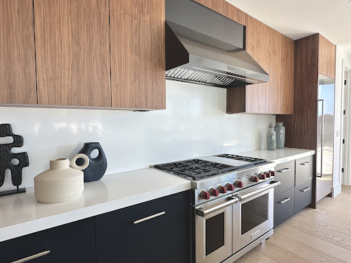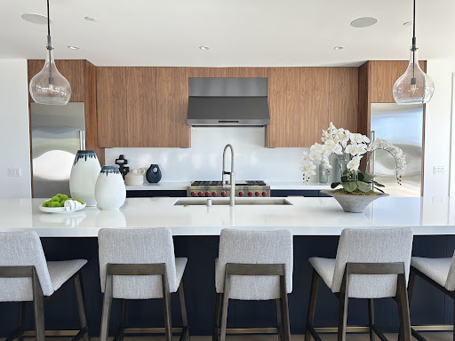 We selected a clean, minimalist cabinet style in a soft neutral finish to reflect the natural light that fills the home. The result is a kitchen that feels airy, calm, and timeless, perfect for a coastal setting like Dana Point.